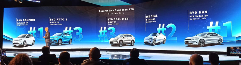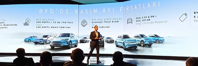 Ergun, geçen yıl elektrikli araç pazarının 100 bin civarında tamamlandığını anımsatarak, “Bu sene elektrikli otomobil pazarının 200 bin civarında bitmesi bizleri şaşırtmayacak ve şu anda 10 aylık pazarda yüzde 18’lik bir pazar payına ulaşmış durumda binek otomobiller içinde. Bu trend bu şekilde devam edecek gözüküyor. Sadece elektrikli pazara baktığınız zaman, BYD, 3. marka olarak pazarda yer edinmiş durumda.” diye konuştu.