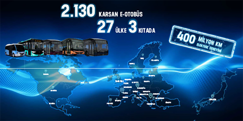 Bu satışların 555 adedi ihracattan geldi. Bugün Karsan’ın elektrikli araçları 3 kıtada, 27 ülkede toplam 2 bin 130 adetlik filoyla faaliyet gösteriyor. Şirket, elektrikli toplu ulaşımda 400 milyon kilometreyi aşan bir operasyonel deneyime ulaştı.